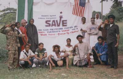 ONE-DAY ACADEMIC SEMINAR 11th August, 2006. Our SAVE Chapter will hold a One-Day Academic Seminar titled “Equipping Nigerian Students towards facing future academic challenges”. It will take place on 11th August, 2006 by 10am at Abia State Polytechnic School Pavilion. You will be welcomed and recognized as you come. It is free and open to all. VIOLENCE PREVENTION CAMPAIGN/AWARENESS Our SAVE Chapter was able to reach to the adolescent's young adult students, and shared with them hand-bills which contain information on causes, consequences and prevention of violence in our various schools and communities. On the handbills, it was described that some of the most common modes of violence in higher institutions (Colleges) worldwide involves gangs, joining of cults, etc. Invitation forms where equally shared with people in order to join our chapter on campus. Members wore different kinds of cloths and attires just to draw the attention of the public. Our Academic Advisor (Mr. Zayon Nzegbulam), Head of Security, Deputy Rector , Registrar, etc where all happy when we got to their various offices.